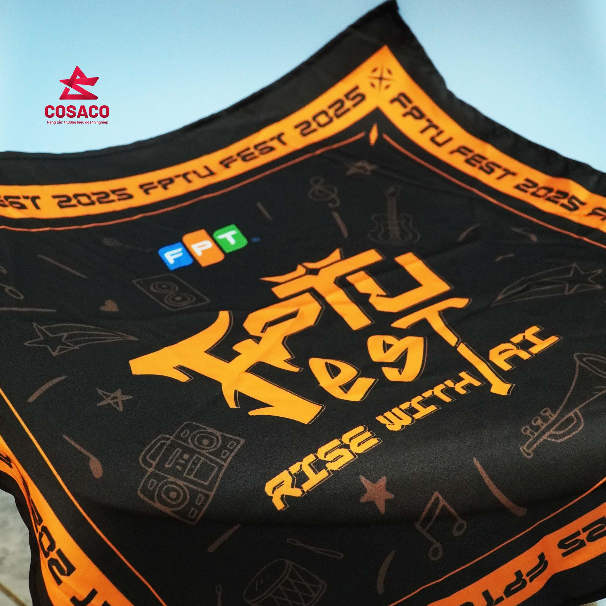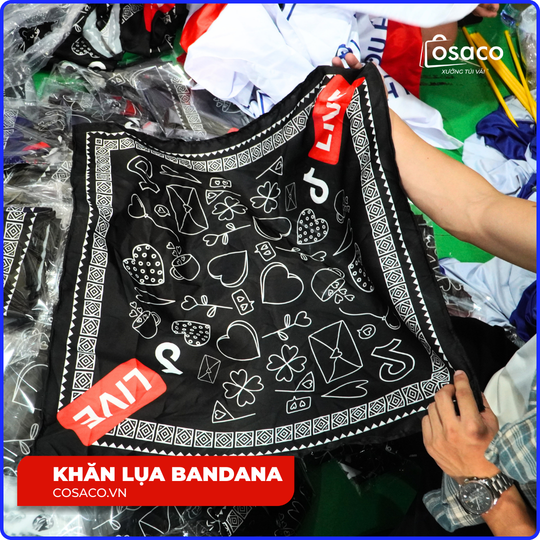 Khăn lụa / khăn bandana in theo yêu cầu là sản phẩm khăn được thiết kế riêng theo nhận diện thương hiệu của doanh nghiệp, cho phép in logo, họa tiết, màu sắc hoặc concept chiến dịch.